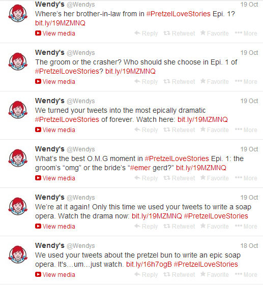 Wendy’s made thousands of consumers laugh in October of 2013 when they created a ridiculous, soap-opera style video featuring over-the-top actors reading real tweets from consumers.